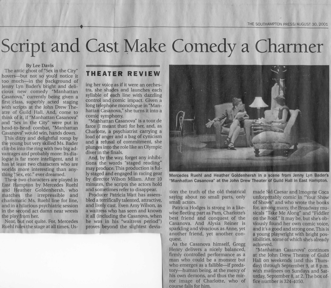 Praise for Manhattan Casanova at the John Drew Theatre at Guild Hall: