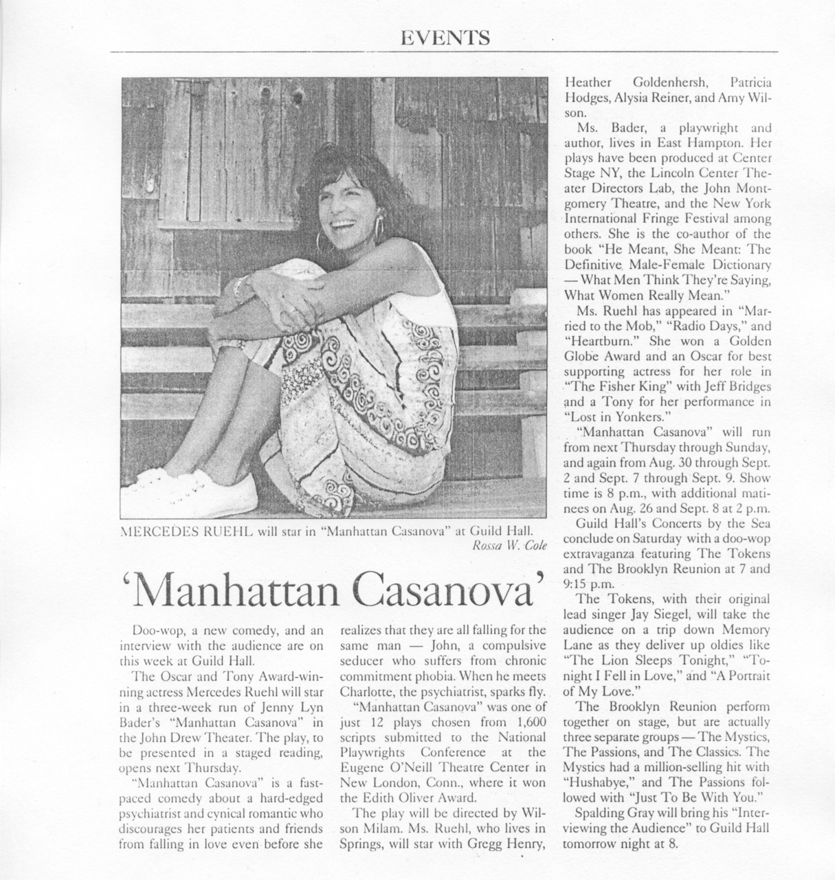 These characters are played in East Hampton by Mercedes Ruehl and Heather Goldenhersh, who matches the irrespressible and charismatic Ms. Ruehl line for line... Ruehl rules the stage at all times. Using her voice as if it were an orchestra, she shades and launches each syllable of each line with dazzling control and comic impact.
